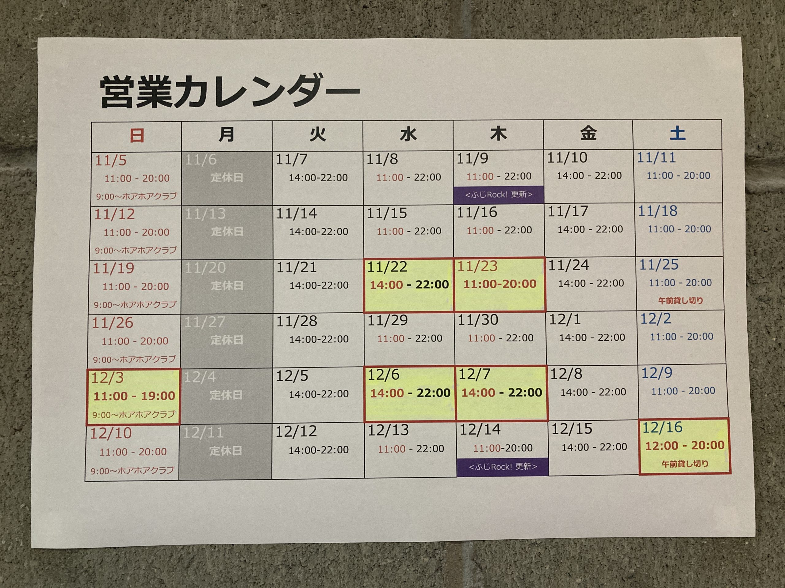 営業カレンダー